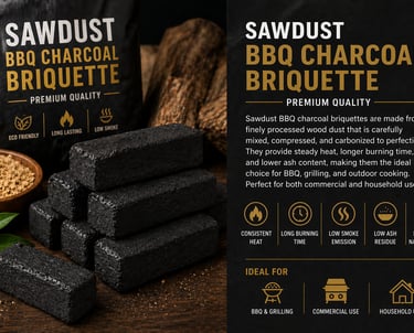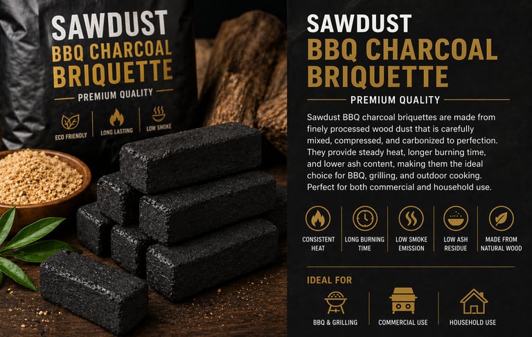 Crafted from finely processed wood dust, these briquettes are engineered for uniform density and performance. They provide stable heat output, extended burning duration, and minimal ash residue—making them a reliable solution for both commercial and household BBQ applications.