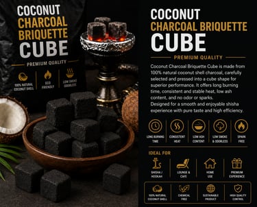 Cube briquettes represent the highest standard for shisha charcoal. With high density, long-lasting burn, and ultra-low ash content, they deliver consistent heat without affecting flavor—ensuring a premium user experience.