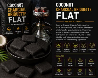 Charcoal briquettes are a high-quality, eco-friendly fuel made from compressed natural materials such as coconut shells or hardwood charcoal. Designed for consistent performance, they offer long-lasting burn time, high heat output, and minimal smoke, making them ideal for grilling, barbecuing, shisha, and various industrial applications. With their uniform shape and low ash content, charcoal briquettes provide a clean and efficient energy solution for both domestic and commercial use.