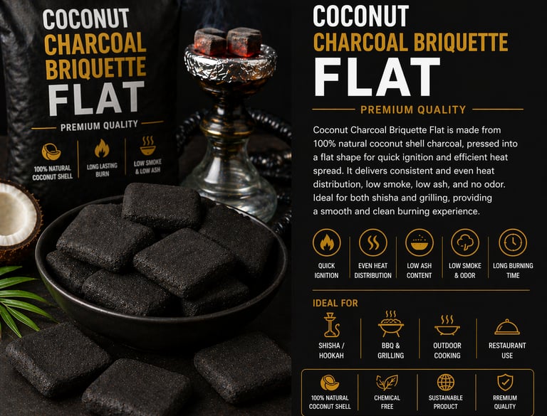 Flat briquettes are designed for rapid ignition and controlled heat release. Their wide surface area allows efficient combustion, making them suitable for applications requiring precise and even heat distribution.