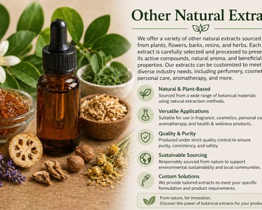 Other Natural Extracts include a wide variety of plant-based oils, resins, and botanical derivatives sourced from natural materials. These extracts are used across multiple industries such as perfumery, cosmetics, food flavoring, and wellness. Each extract offers unique aromatic and functional characteristics, contributing to innovative and high-quality product formulations.